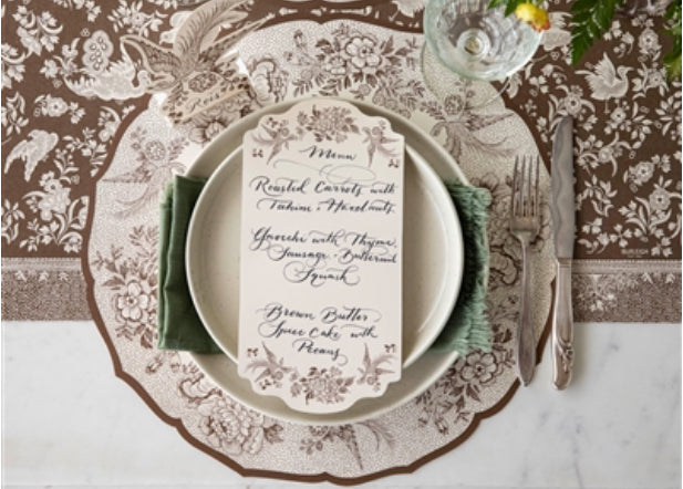 We love these super fun die cut placemats. The color is great, not too bright, keeping your table elegant and handsome for the fall season. Use under your plates off set or directly under, they will highlight them beautifully.